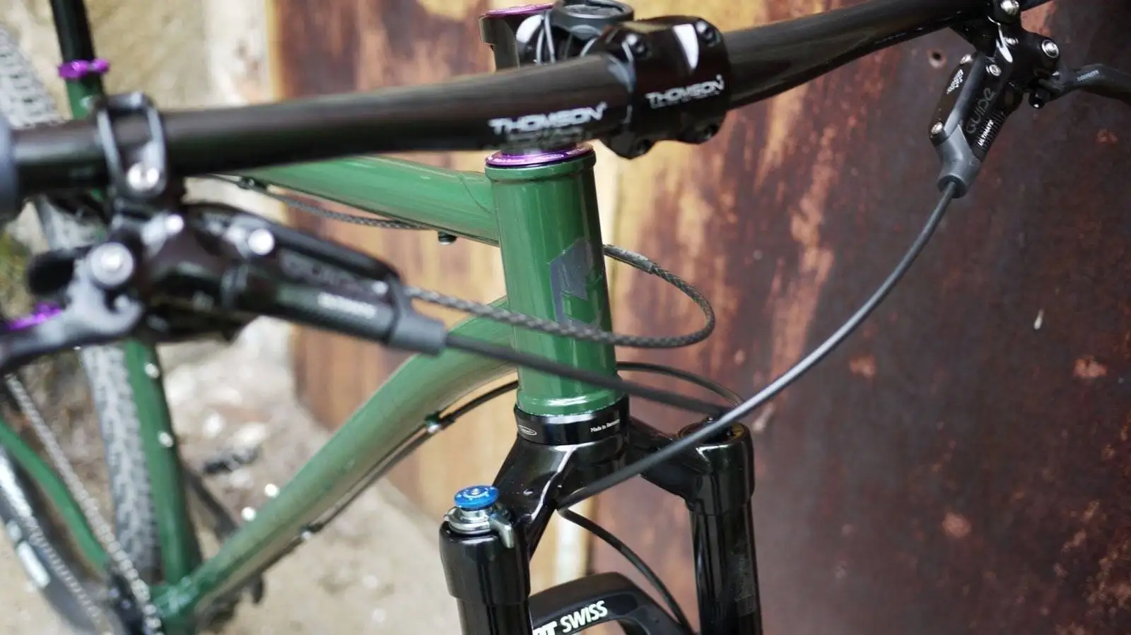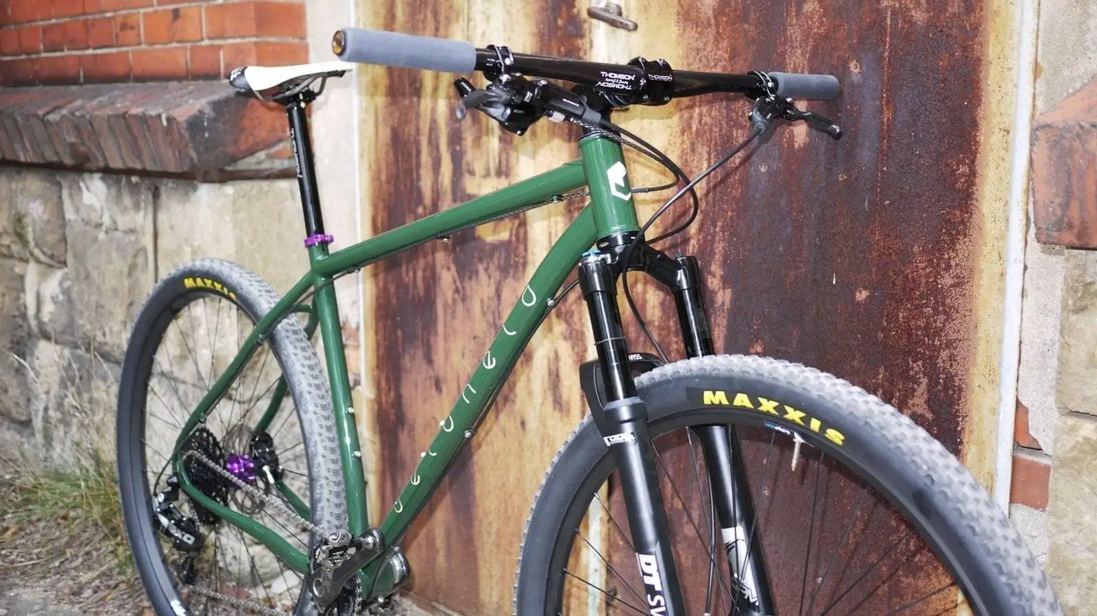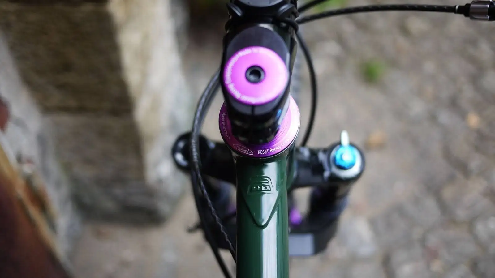 A crazy combination – this 29er veloheld.iron MTB was given a fir green coating (RAL 4009) with black reflective decals. The frame was then built up with purple anodized parts from Hope, Reset Racing etc.. An unusual color combination. Often you can’t imagine such variations, but we are all the more pleased about such “crazy” projects.