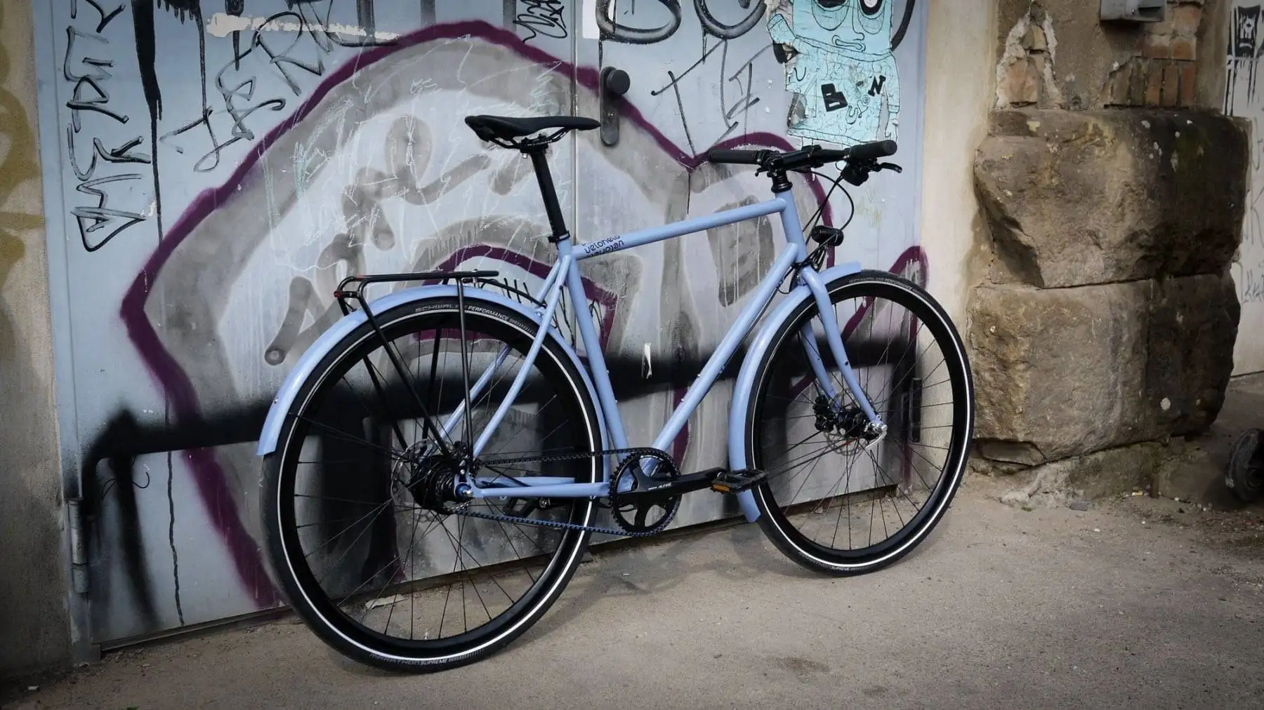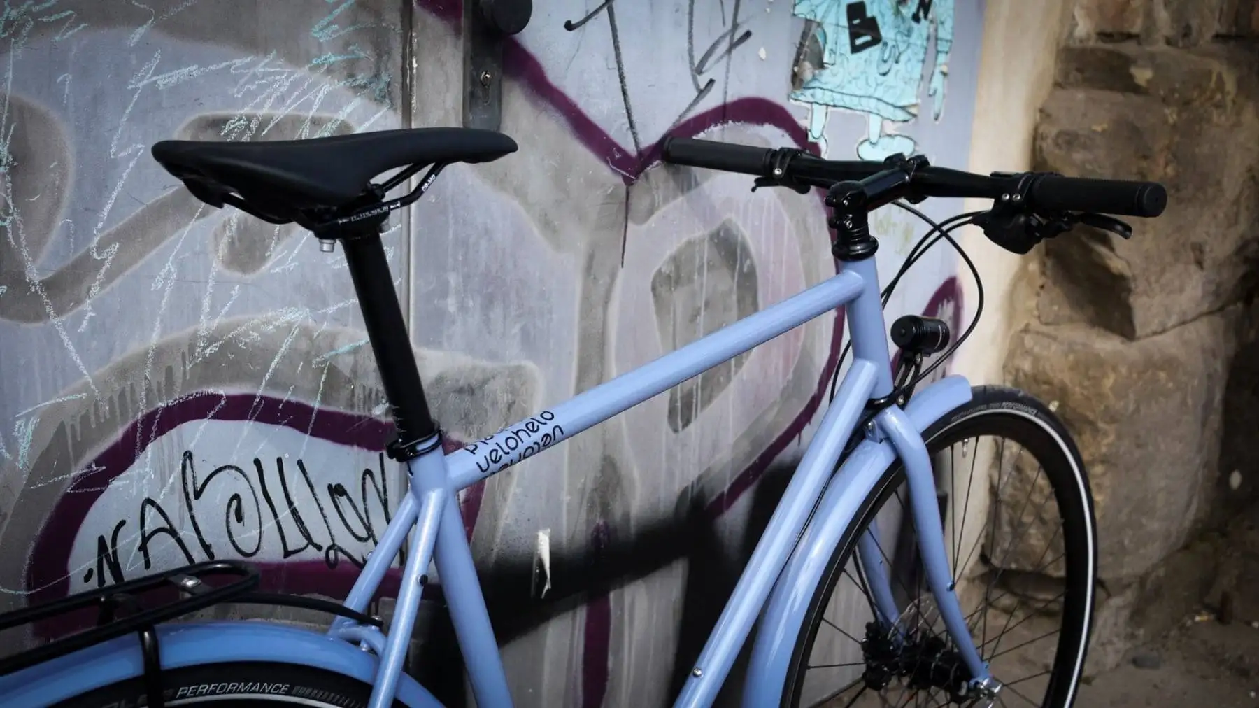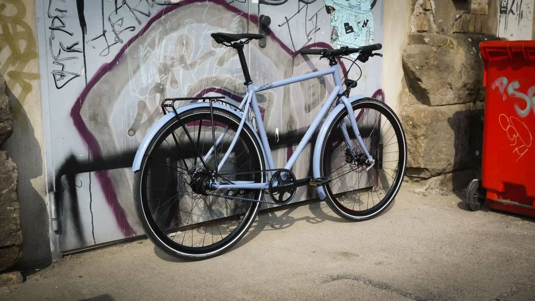 The color of the day – dove blue or RAL 5014 for this veloheld.lane in frame height M. Have fun with the new owner!