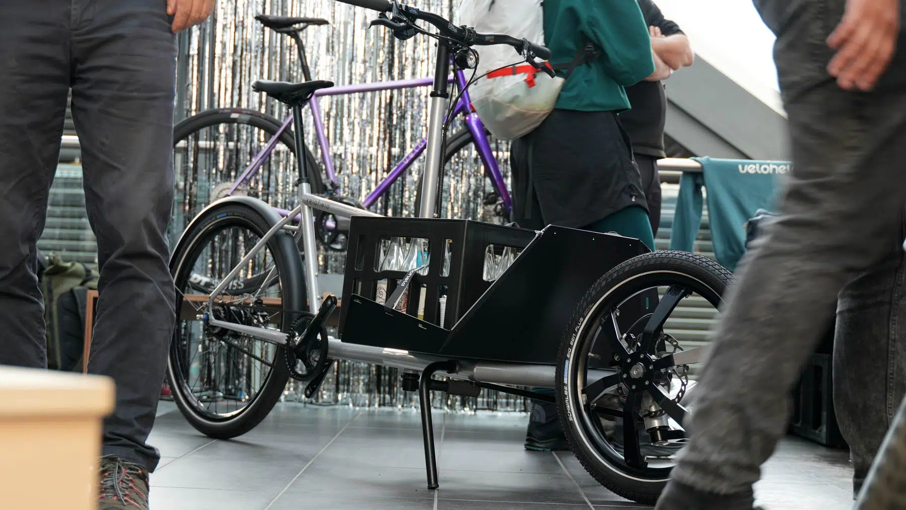 After many small adjustments in our frame construction workshop, we were able to present the cargo bike to the public for the first time under the veloheld logo at the Bespoked trade fair. The highlight of the bike is undoubtedly the Ackermann steering, which allows direct force to be applied to the frame and does not have to be absorbed by a small fork. Forks are for eating!