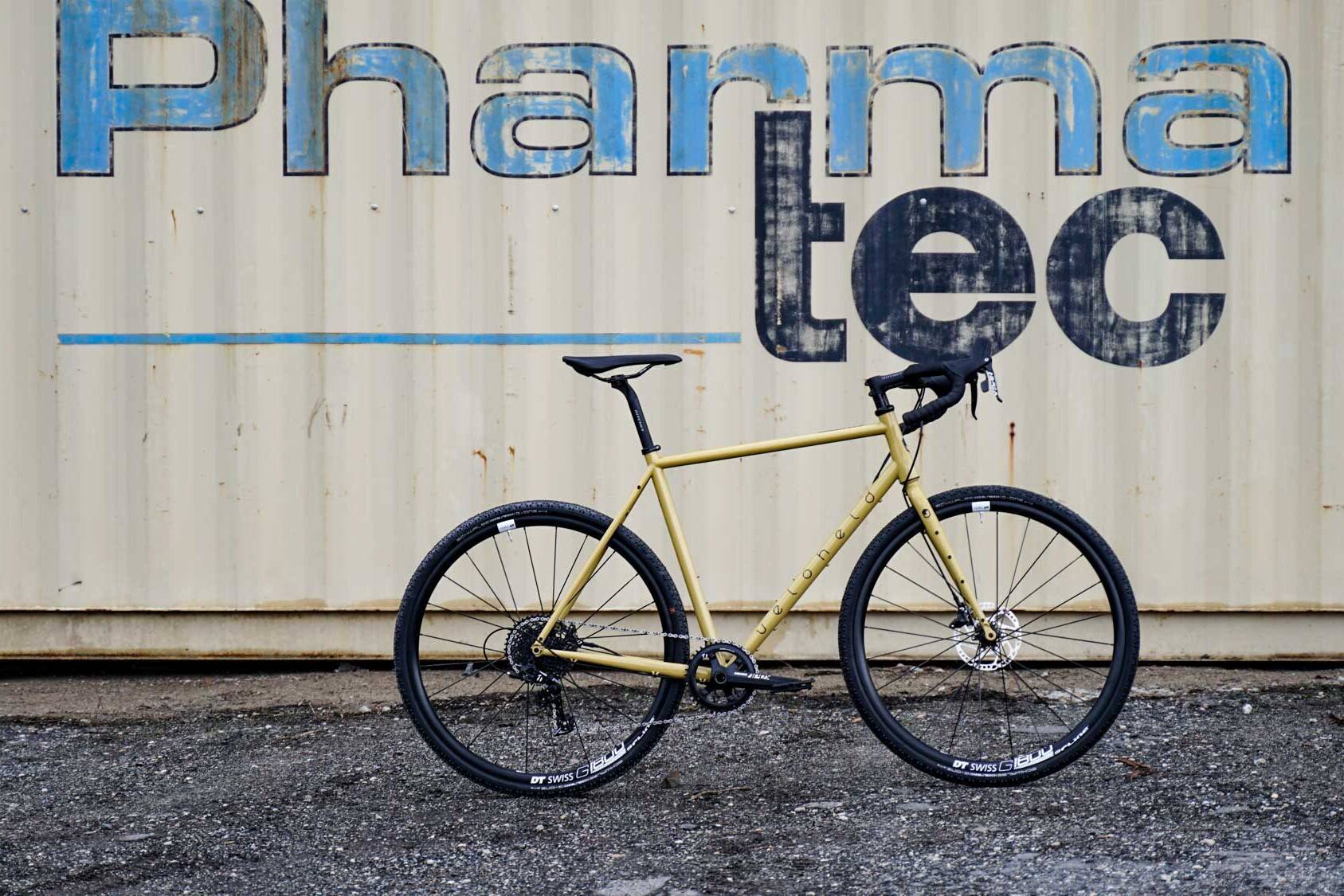 A veloheld.iconX gravel bike in melon yellow