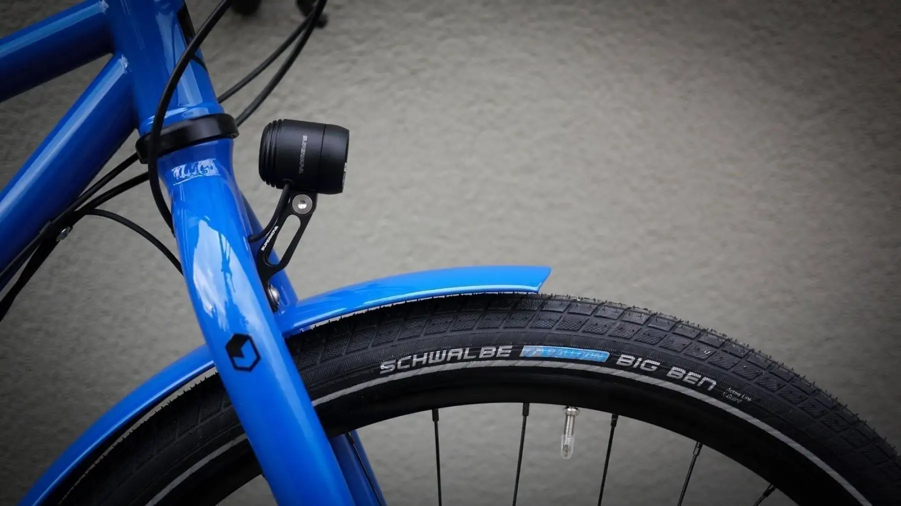 Blue week at veloheld! We start with a veloheld.path urban bike in gentian blue or RAL 5010 in frame height S. As a small upgrade to the standard bike, a Shimano Alfine 11-speed hub does the work at the rear instead of the 8-speed hub. Otherwise, the city/touring bike is equipped with the standard components of the veloheld.path. So with comfortable 50mm wide tires from Schwalbe, the low-maintenance Gates Carbon Drive belt drive and the bright Supernova lighting.