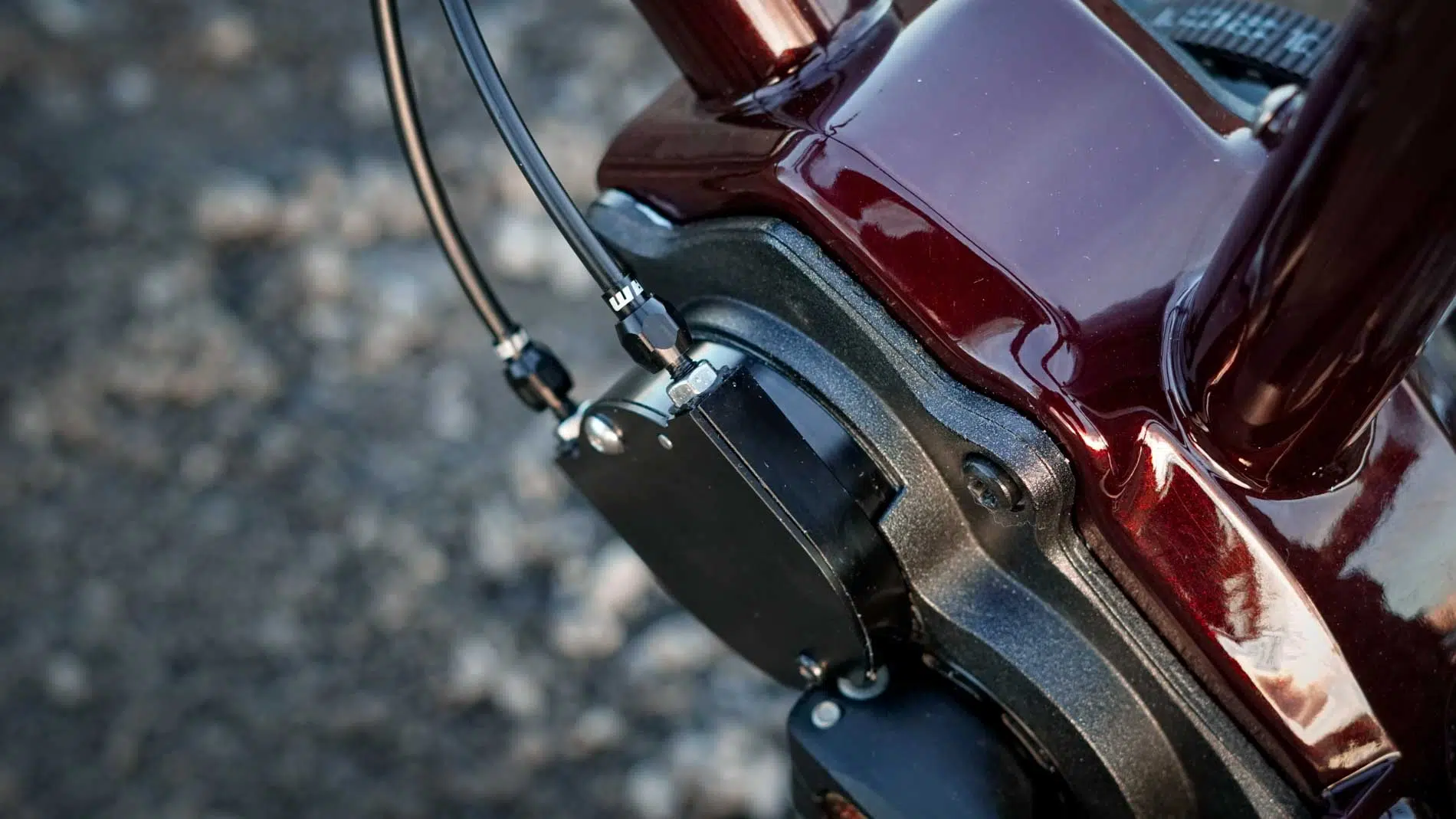 But how is this controlled with SRAM levers? We use the new Hibox for this. This small box directly on the gearbox enables shifting with SRAM or Shimano levers. We opted for the simpler levers from SRAM. After a small modification for compatibility, the levers can be shifted up on the left and down on the right (heavier gear).