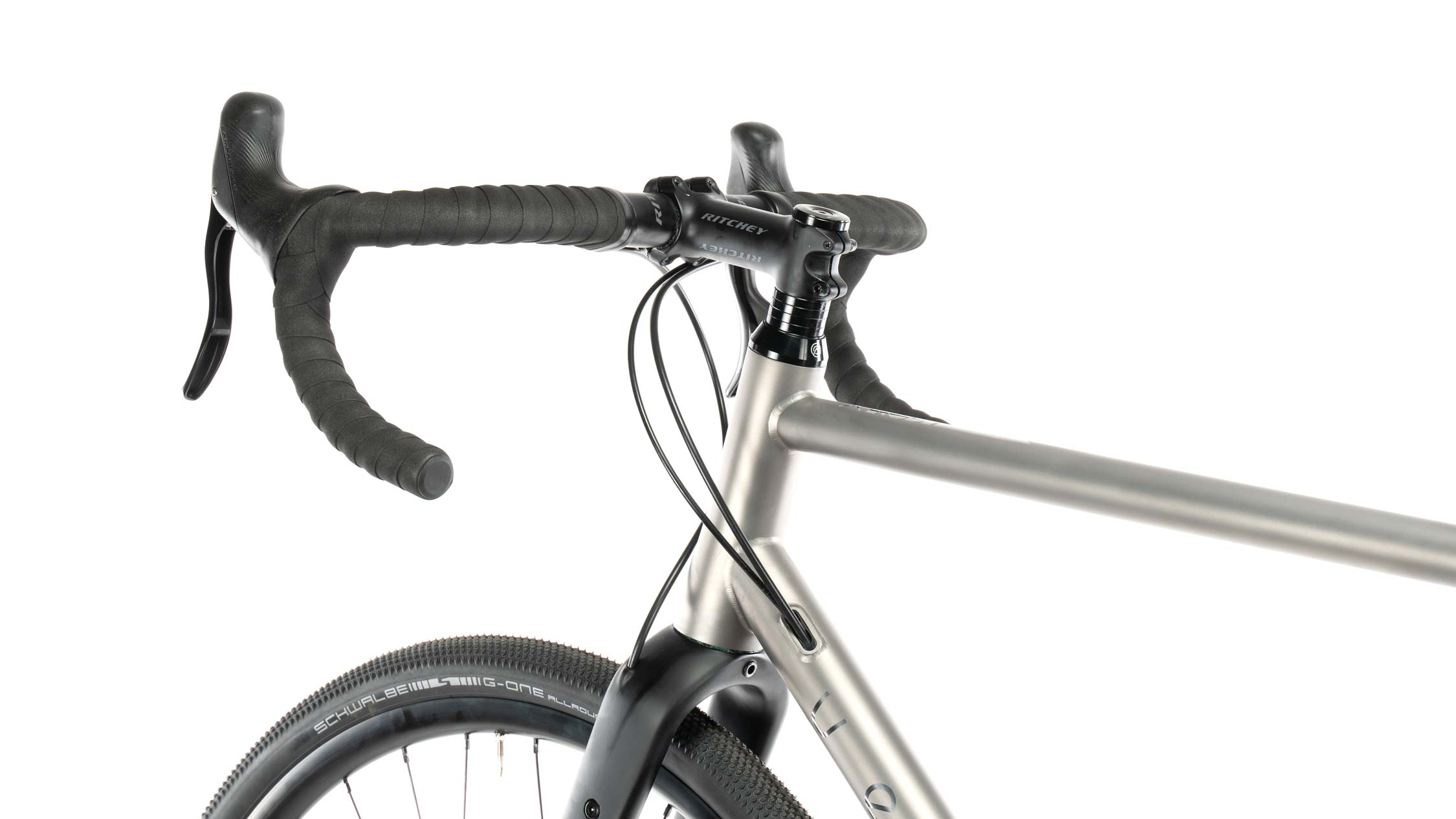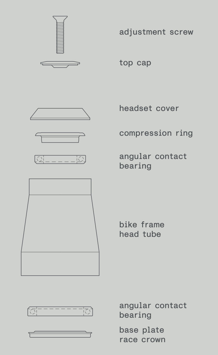 The fork is supplied with the bike and must be inserted after shortening the steerer tube to the desired stem height. The individual parts of the headset are included with the frame and must be finally assembled when mounting the fork.