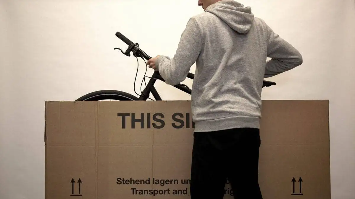 Carefully open the shipping carton and remove the bike and the supplied accessories. Make sure that the frame does not come into contact with the metal clips on the box. Put the box to one side so that you have enough space for further preparation.