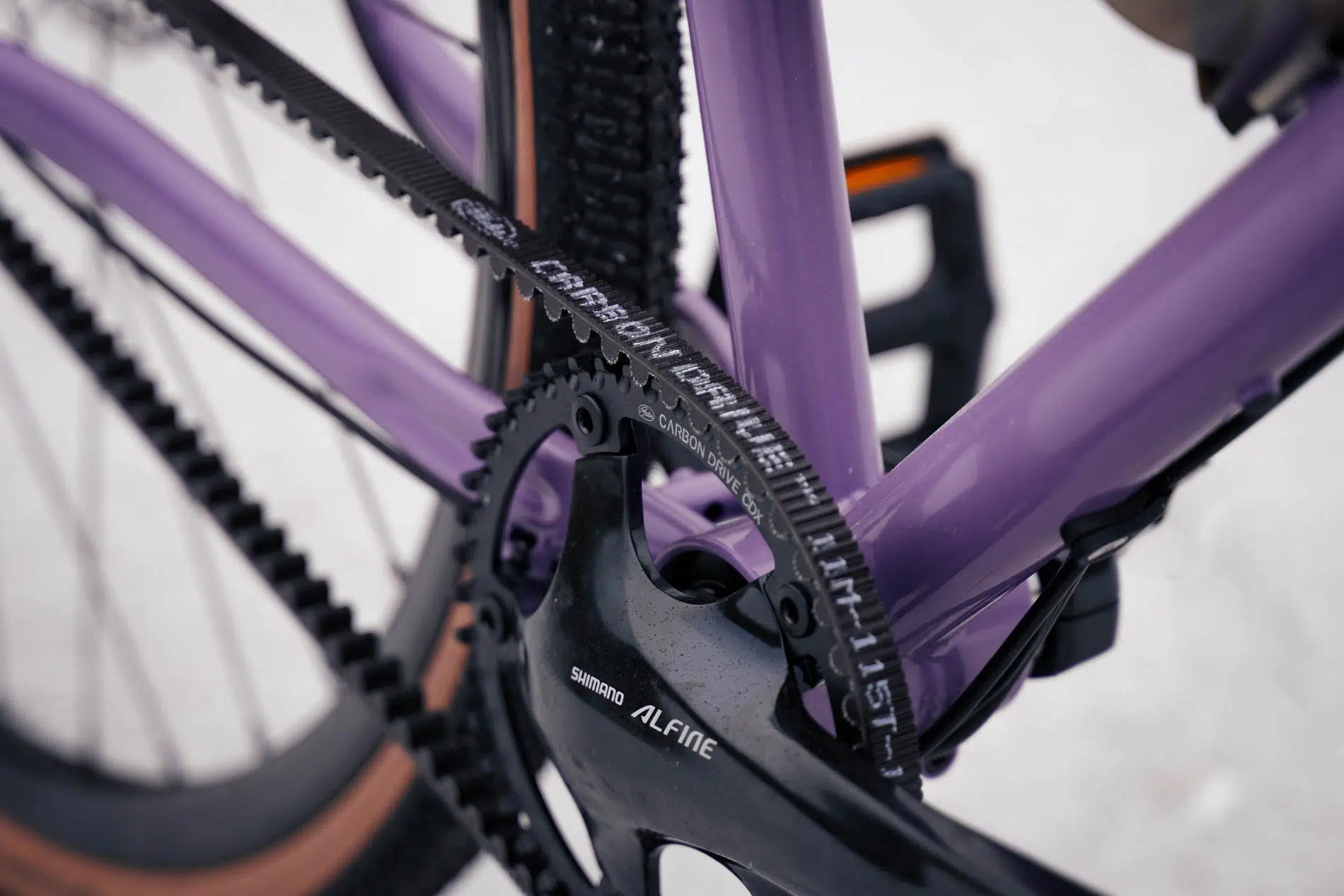 What has remained is the equipment of the “Gravel Utility Bike” with Shimano Alfine hub gears and Gates Carbon Drive belt drive, as it is also installed here on this bike.