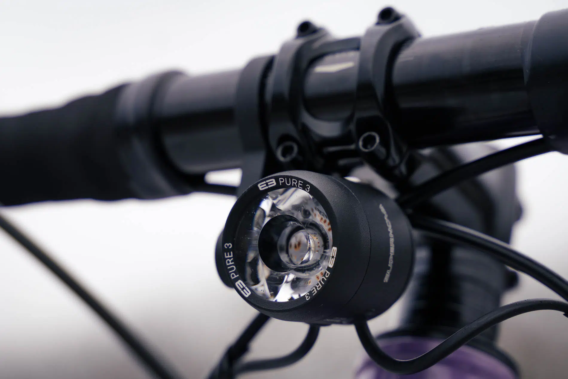 This bike also had discreet lighting. Hidden under the handlebars at the front is a Supernova front light powered by a SON hub dynamo. This also powers the Lightskin seatpost with its discreet LEDs, which ensure visibility to the rear. Really a discreet lighting solution!