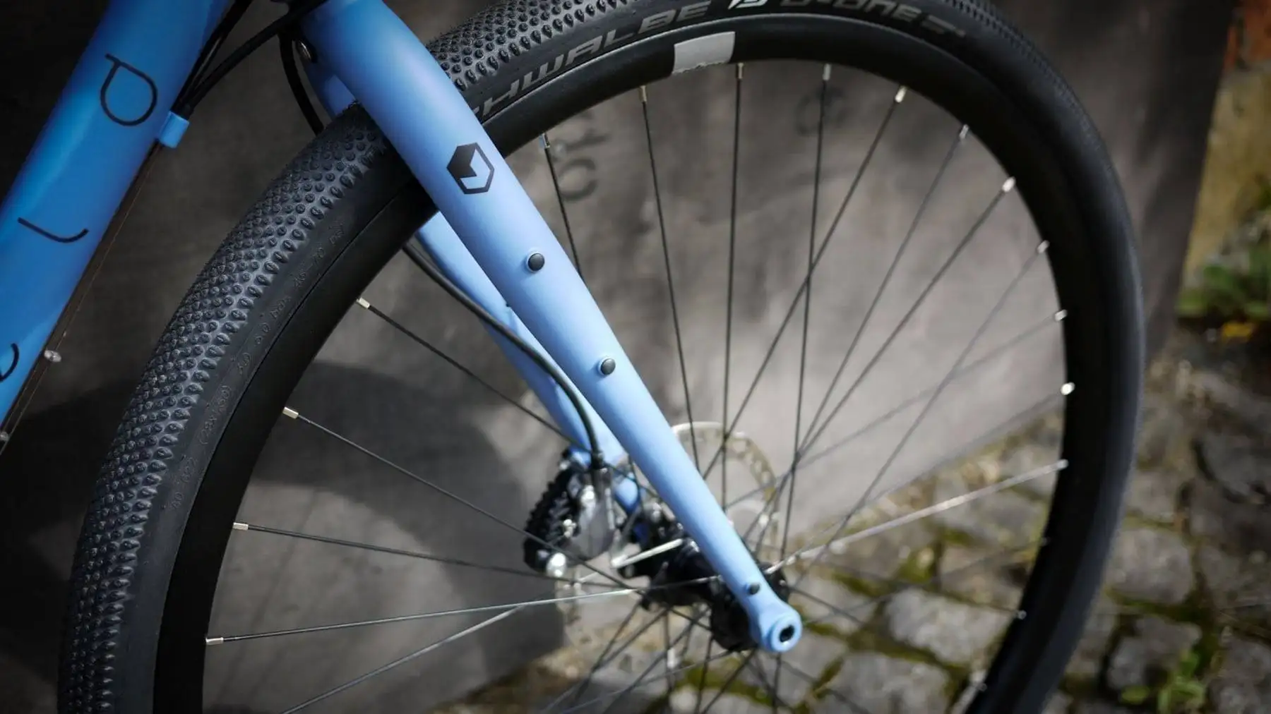 This veloheld.iconX in the beautiful color of your choice, far blue matt (RAL 5023) was ordered with coated veloheld mudguards, Tubus Fly luggage rack and “studless” Schwalbe Marathon Supreme tires. However, if you remove these components and replace the tires with Schwalbe G-One tires, for example, the city or touring bike quickly becomes a real gravel racer.