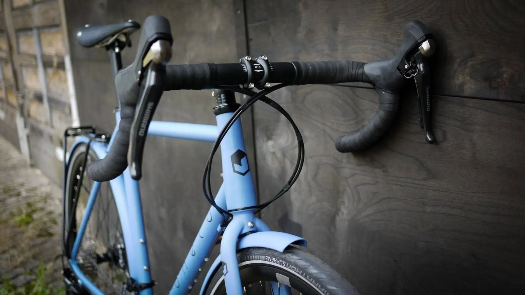 The frame was fitted with a solid Shimano 105 groupset with 2×11 gears, the standard veloheld components, stable Hope wheels and, as the icing on the cake, a Brooks C15 saddle.
