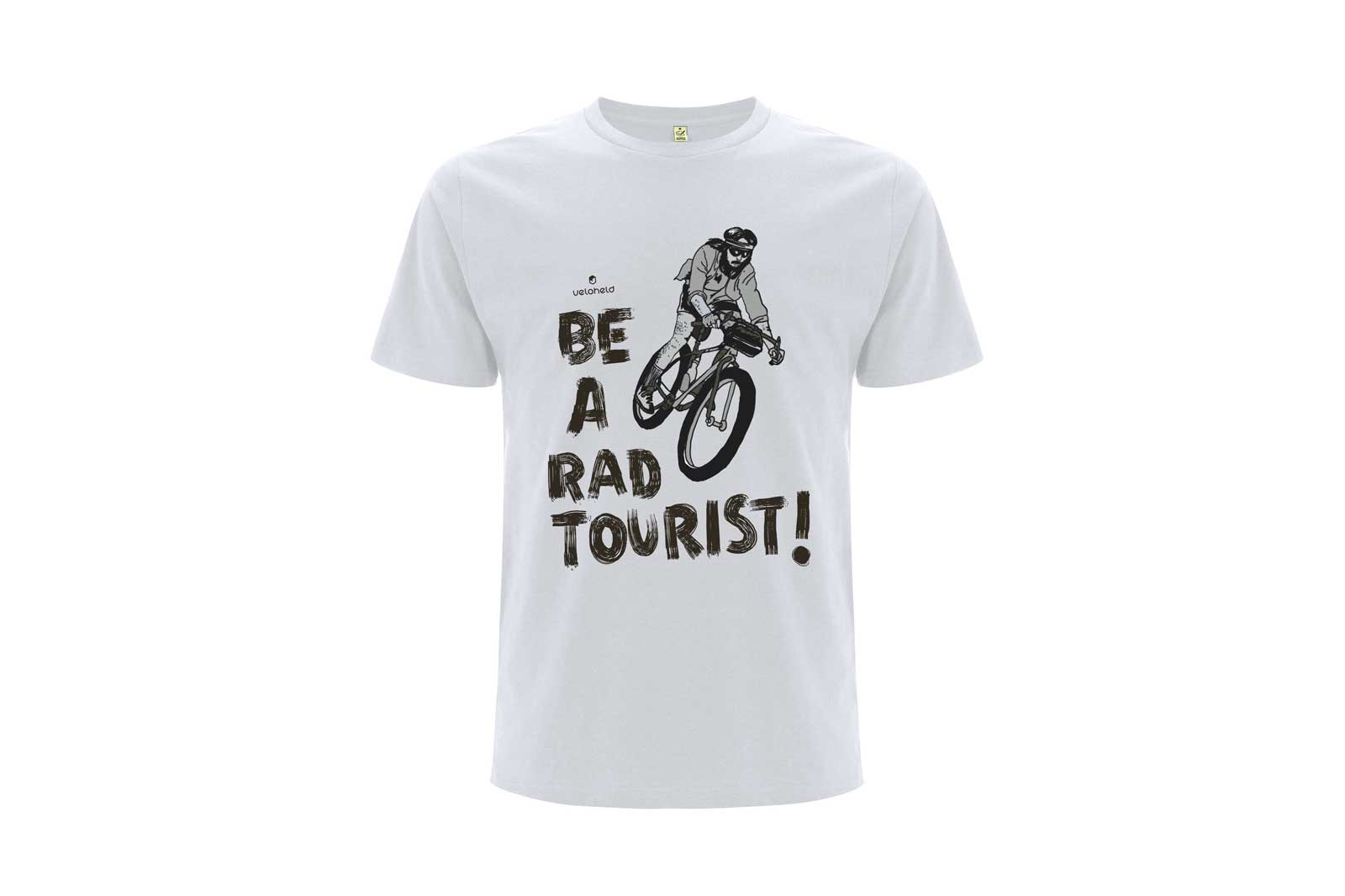 Are you a “bike tourist” or a cycle tourist? Show your love of bike touring on and off the bike with the veloheld “rad Tourist” T-shirt made from organic cotton. The shirt is available in 4 sizes and 2 colors!