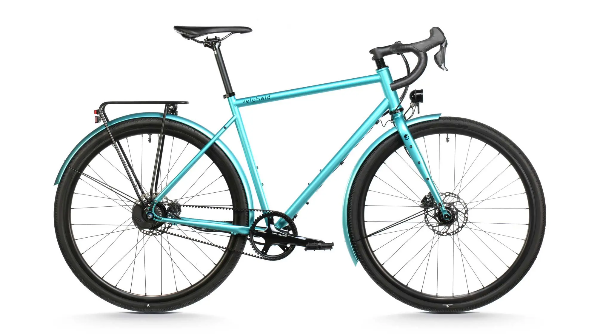 The veloheld.farway Pinion Tour is your new touring bike for wonderful tours. Precisely manufactured in our frame construction workshop in Leipzig, it offers a robust and comfortable CrMoly frame, a 12-speed Pinion gearbox in conjunction with the low-maintenance Gates Carbon Drive belt drive and the bright SON lighting system.