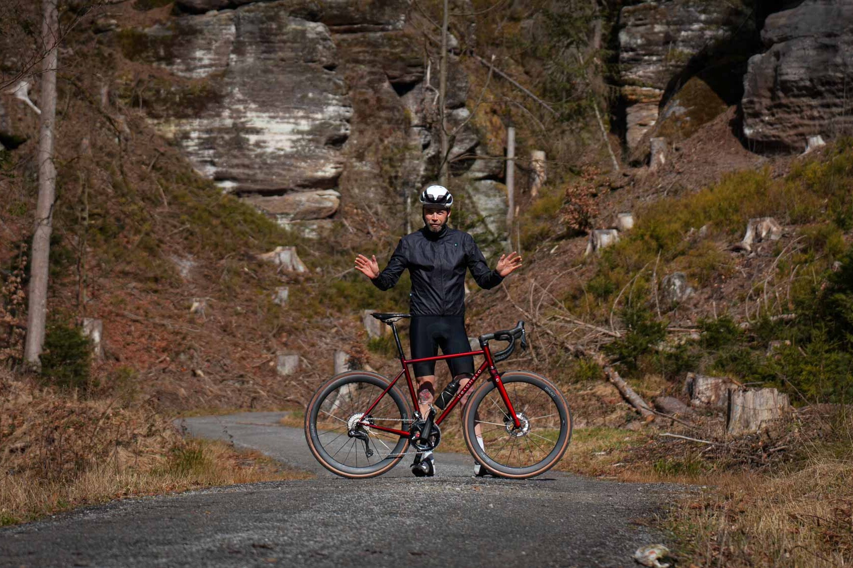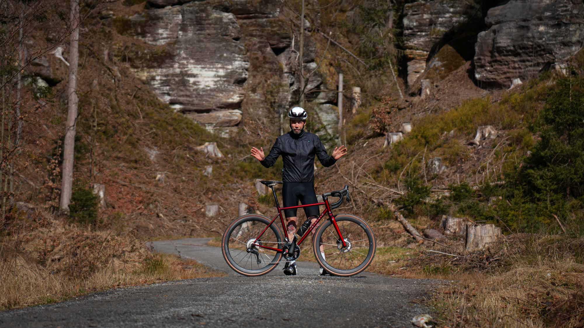 Tim is 1.84 m tall and rides with an inseam length of 85 cm on frame size M at the sporty upper limit.