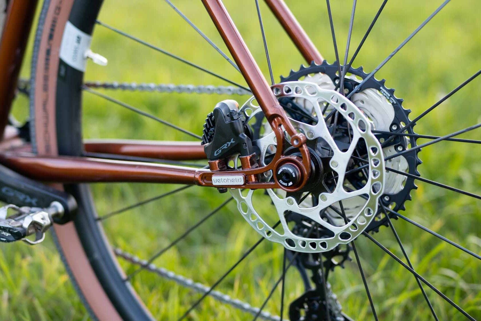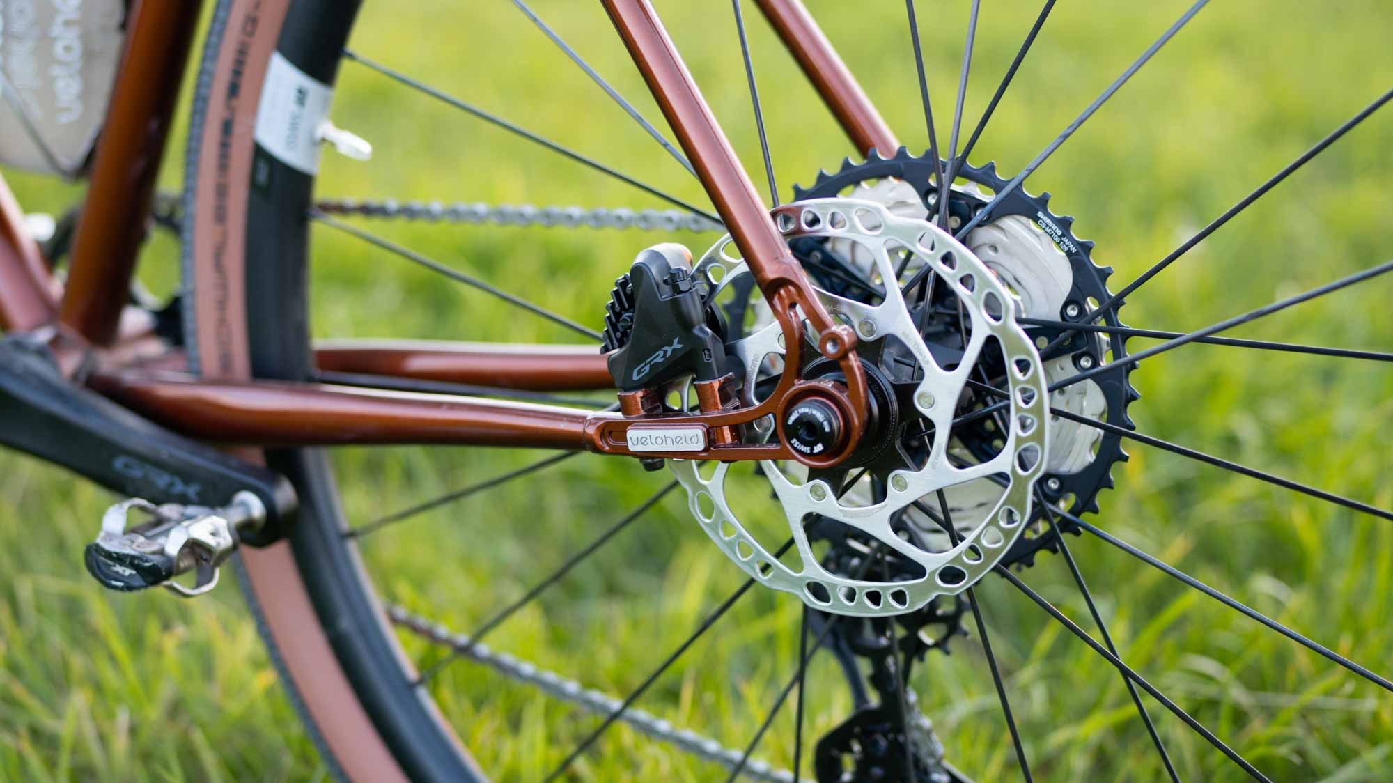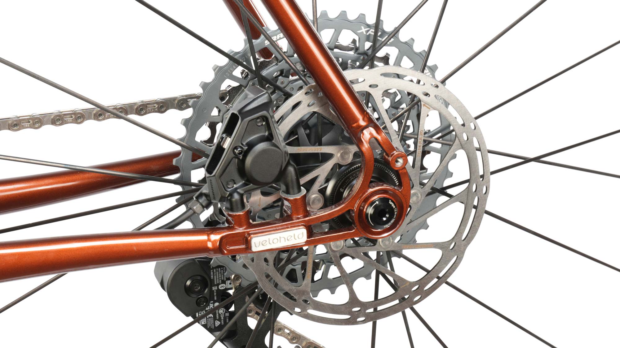 - Double-butted tubes made of veloheld.CrMo steel, TIG welded, 46 mm head tube, Di2 ready, flat mount disc brake mount for 160 mm brake discs located in the rear frame triangle