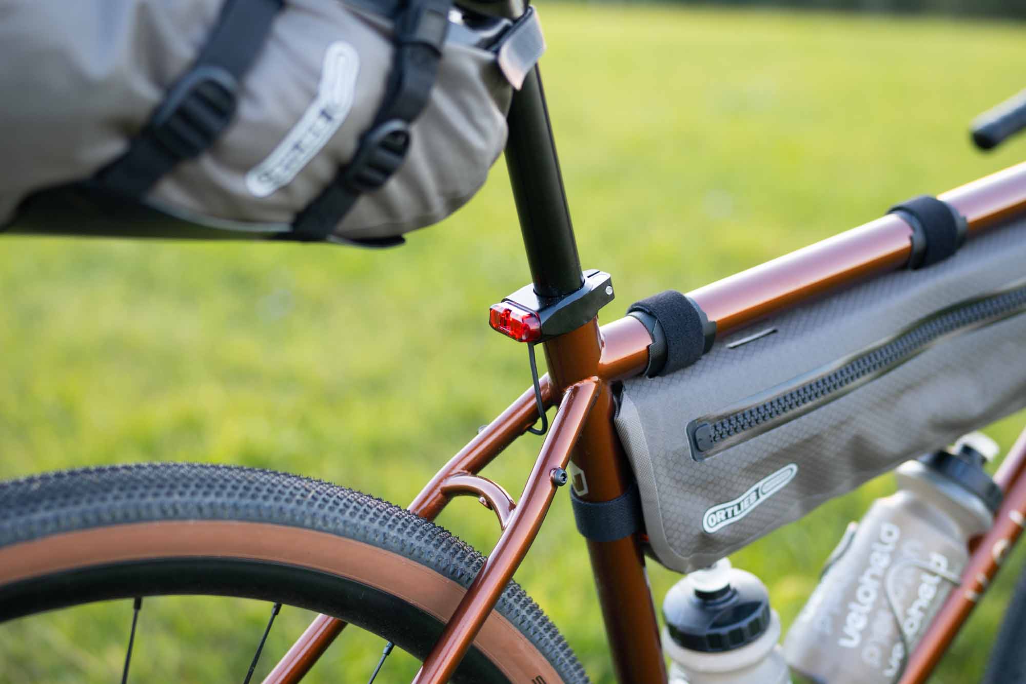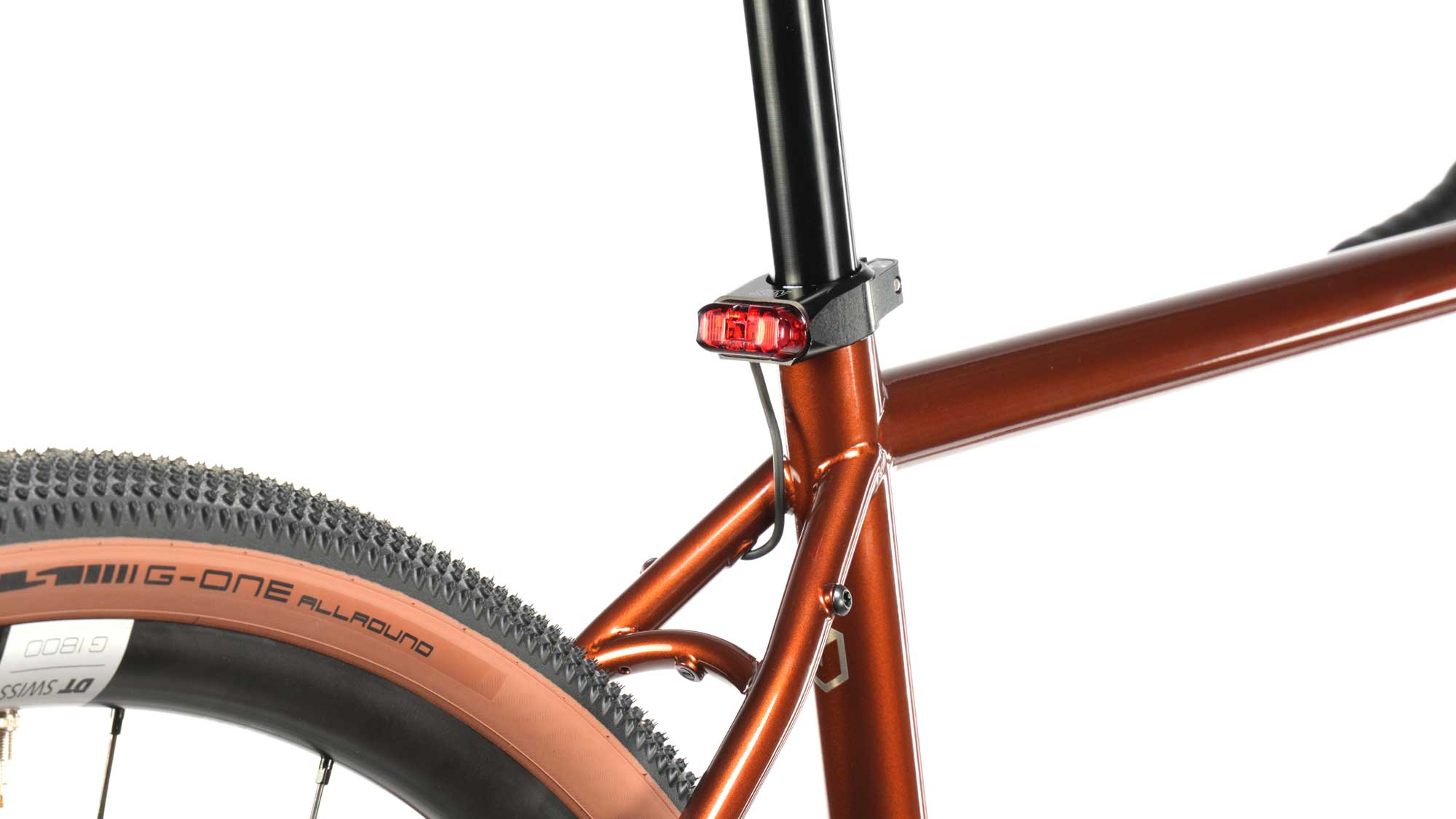 - Eyelets integrated into the seat tube for internal cable routing for a saddle clamp rear light