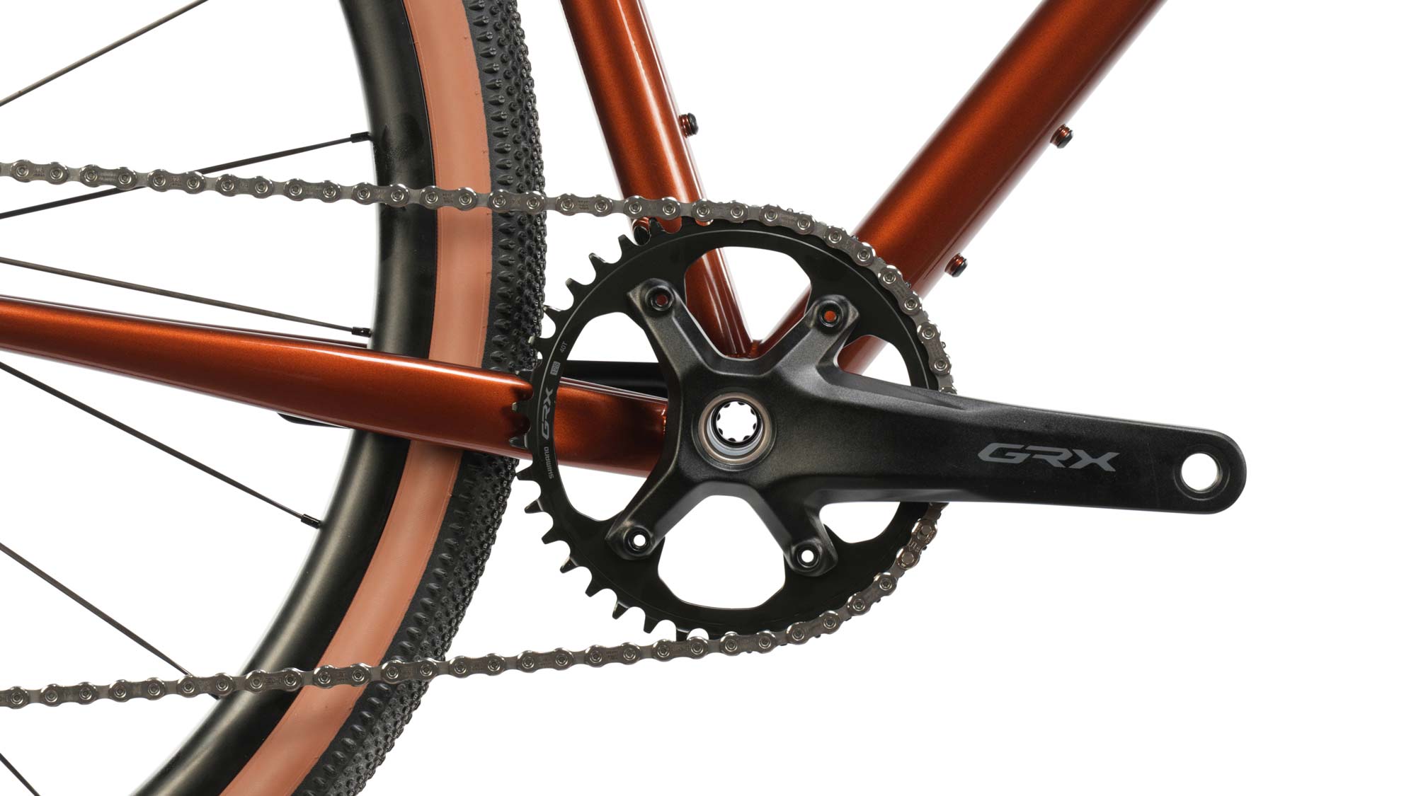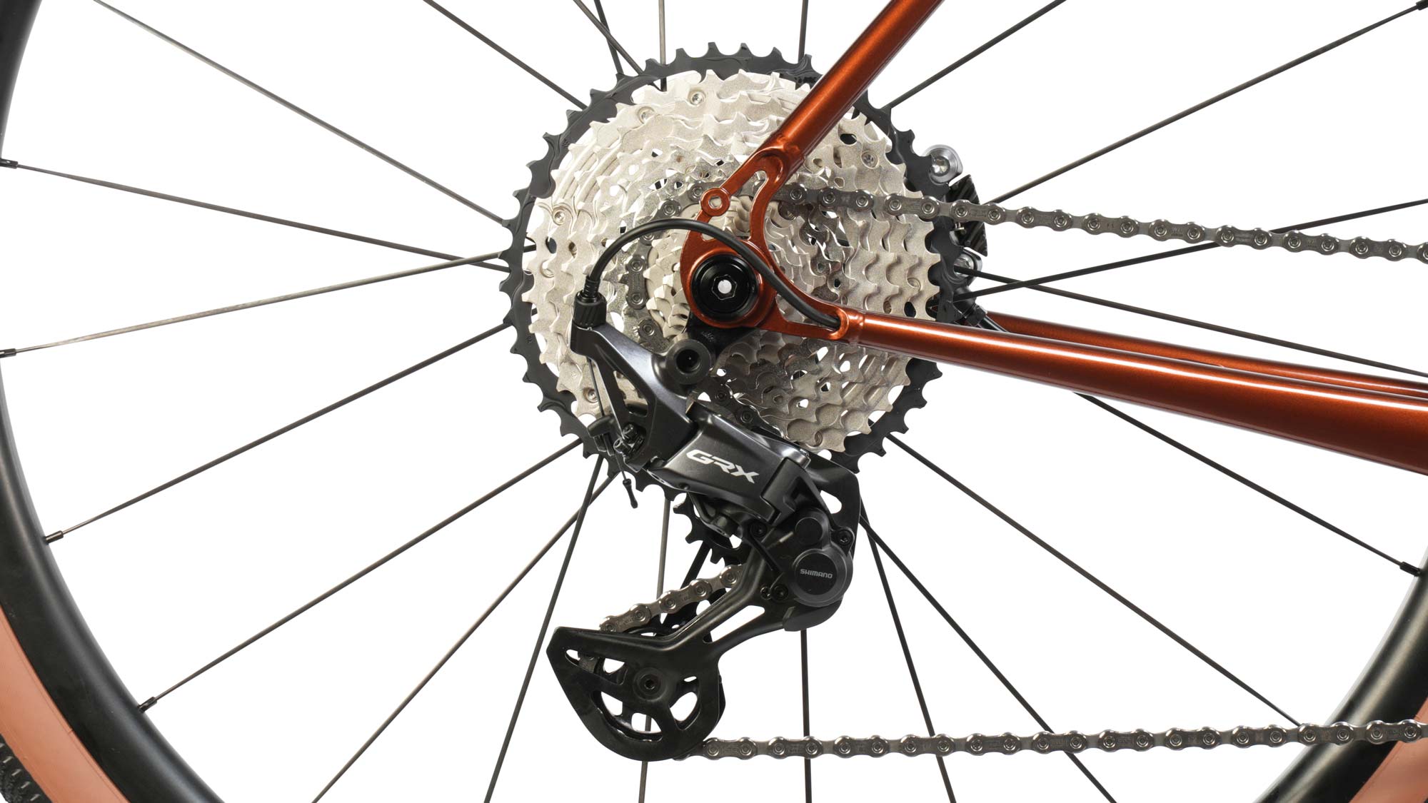 - Shift (for single-speed drivetrains) and brake cable routing integrated into the down tube; for double-speed drivetrains, one cable must be routed under the down tube