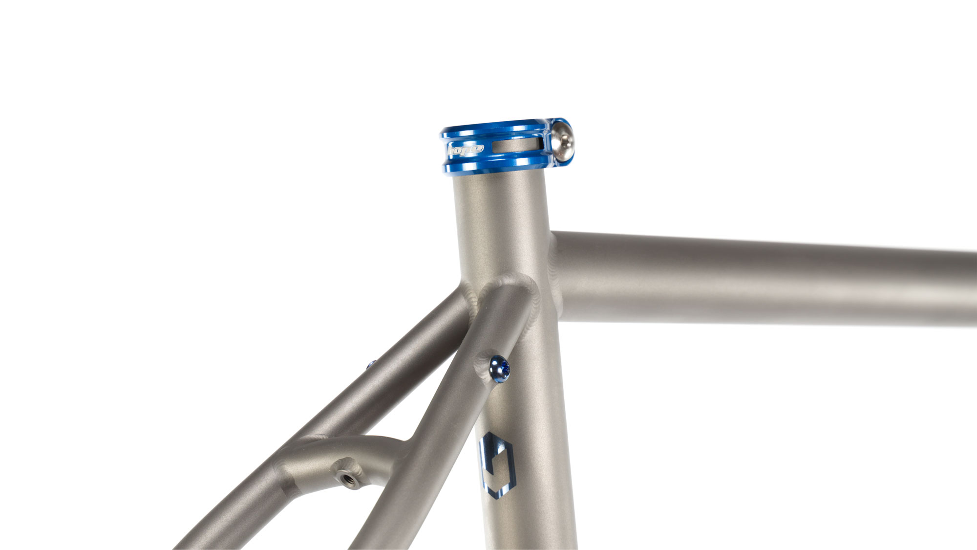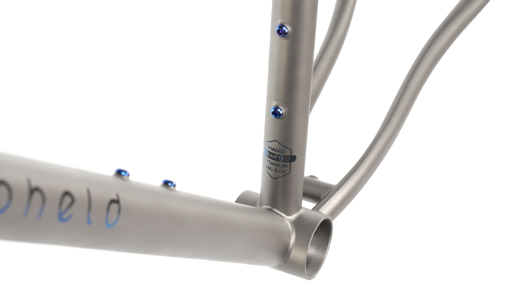 - double end-reinforced tubes made of TiAl3V2.5 titanium, TIG-welded, "tapered" head tube