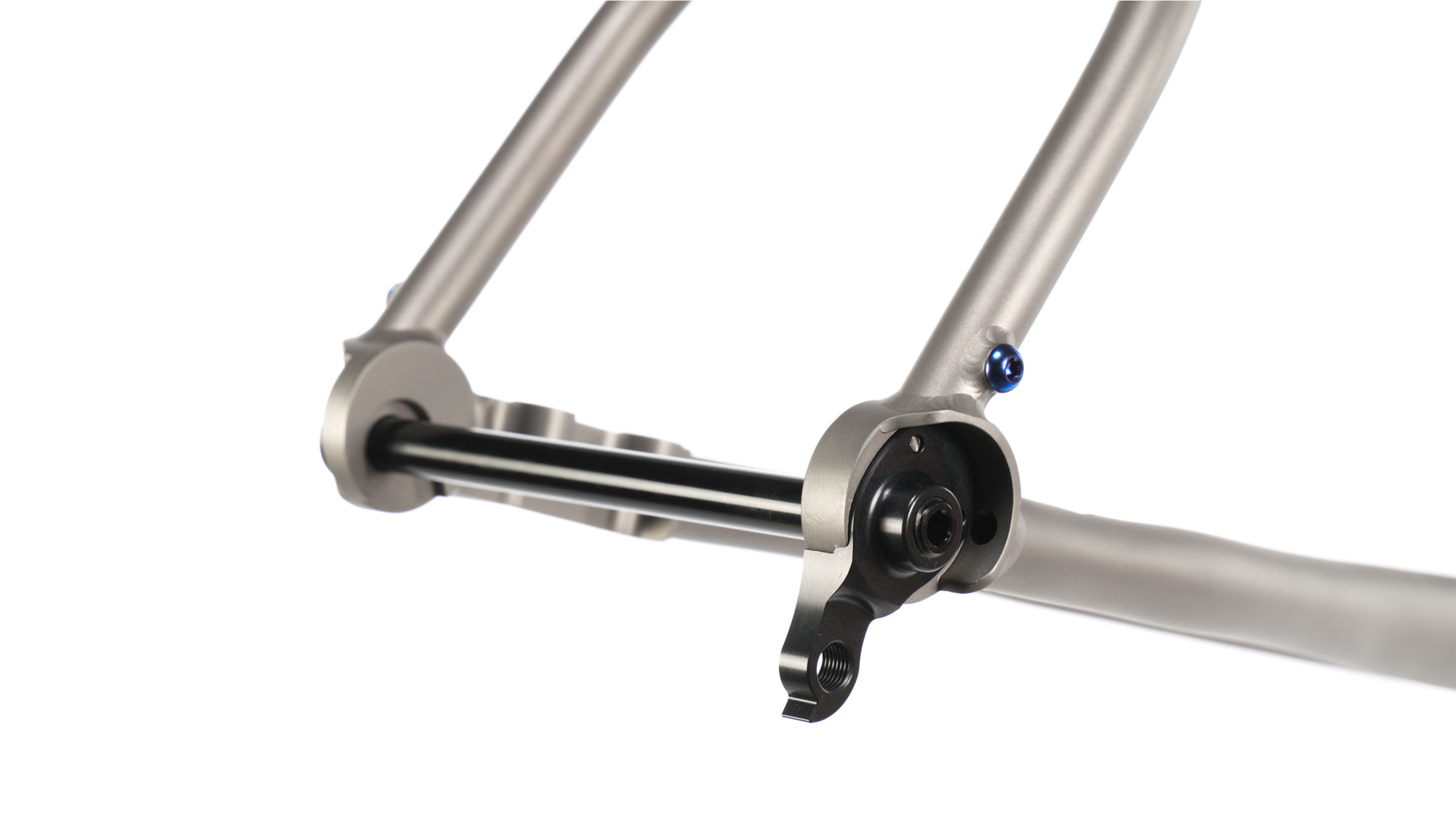 - Dropouts with replaceable aluminum derailleur hanger including M12x142 mm thru axle