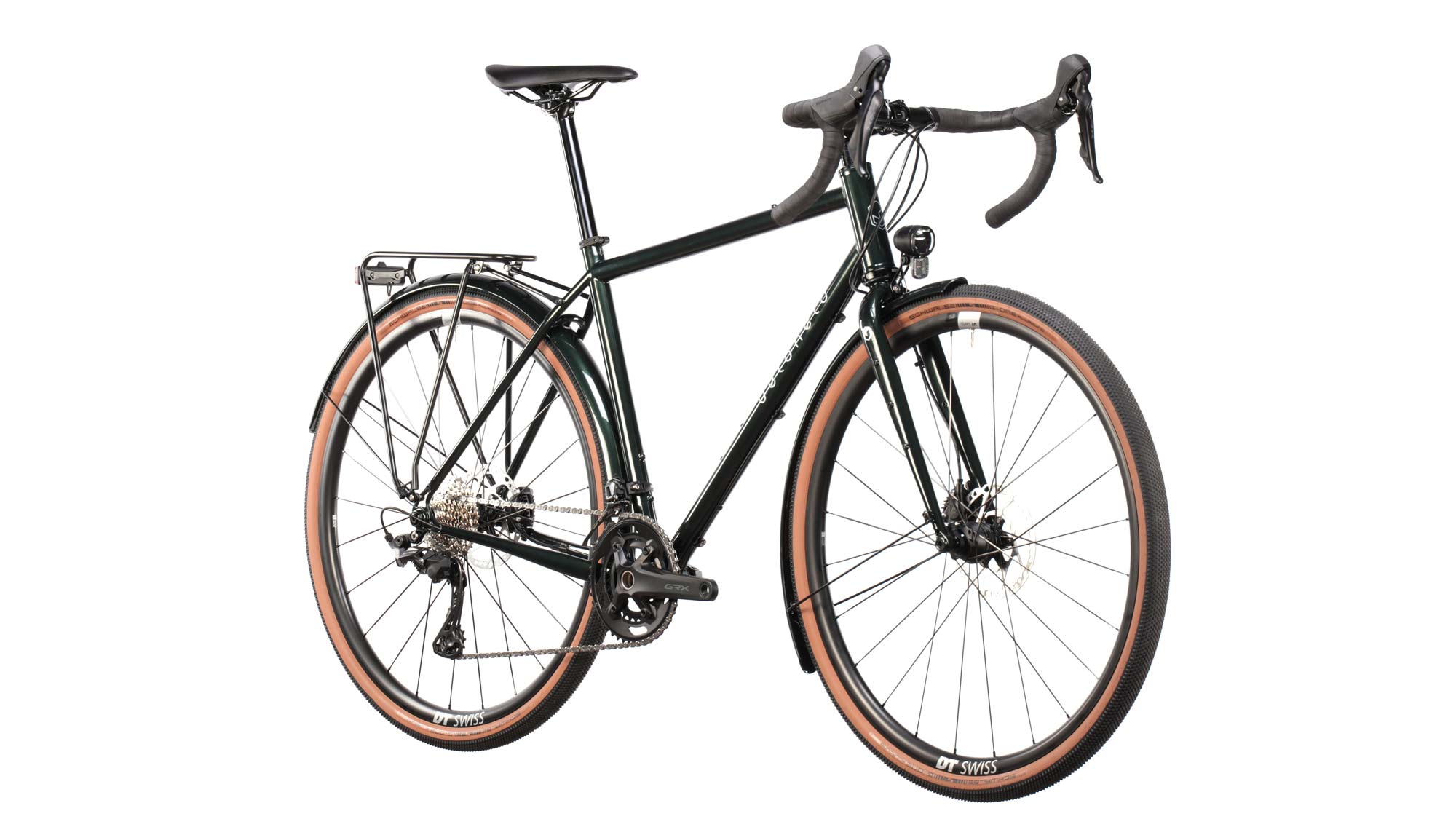 veloheld.iconX Tourist  your touring bike for everyday use and adventureThe veloheld.iconX Tourist is the perfect gravel and touring bike for long tours, commuting and travelling with luggage. With lights, mudguards and a luggage rack, it is fully equipped and ready for any weather.The steel frame, manufactured in Europe, offers comfort, stability and durability  ideal for many kilometres on asphalt and gravel. Thanks to UDH dropouts, T47 bottom bracket and SON lighting system, it is technically state-of-the-art.In Emerald Green, the touring bike is timeless, robust and ready for your next adventure.