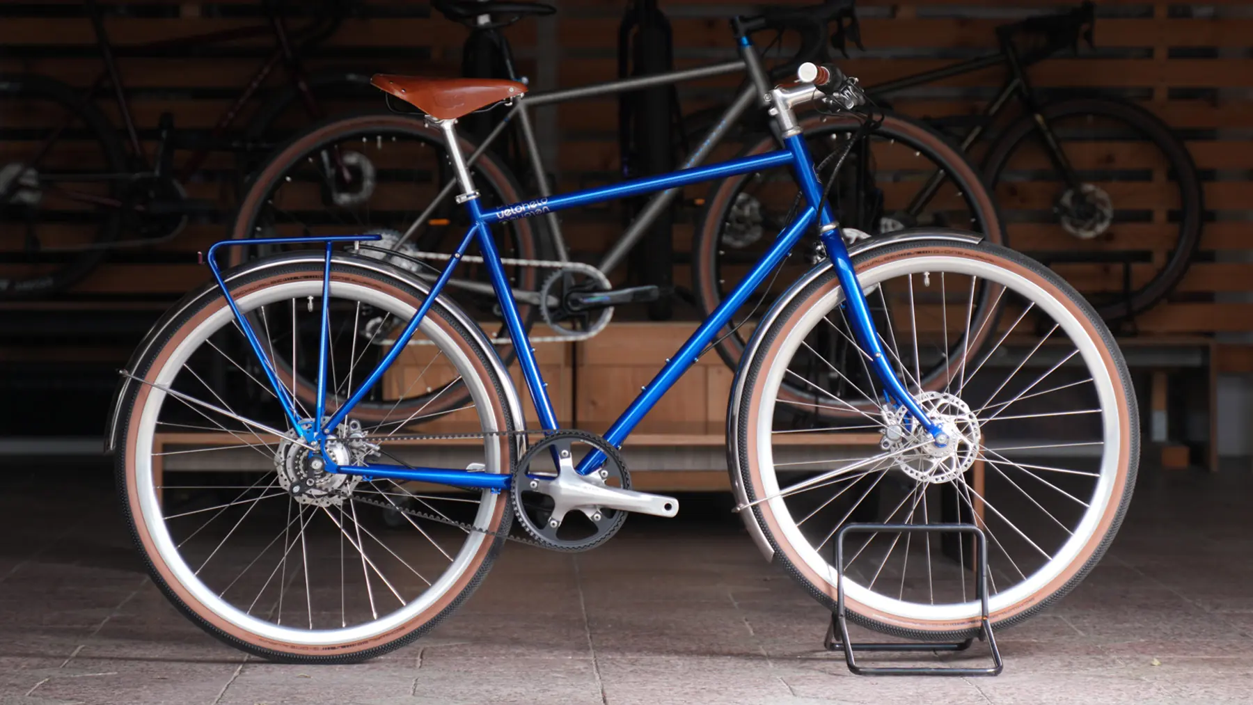 - New bike with Rohloff Speedhub 14-speed, SON hub dynamo including integrated Lightskin lighting system, Velo Orange mudguards and luggage rack, Brooks saddle and grips in size M in glossy ‘Anodized Blue’ with silver decor