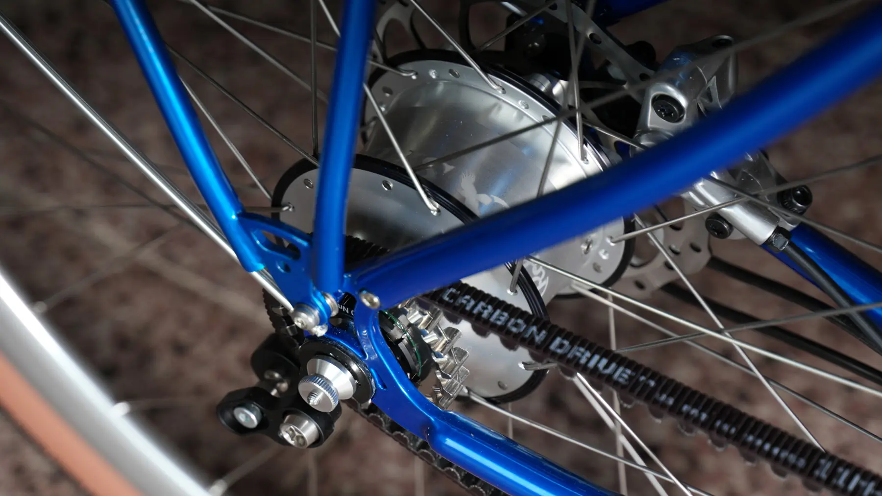 - Frame: double-butted 4130 CroMoly steel tubes, TIG welded, EBB eccentric bottom bracket shell for tensioning the belt, stainless steel dropouts with internal disc brake mount and KSA 18 side stand mount