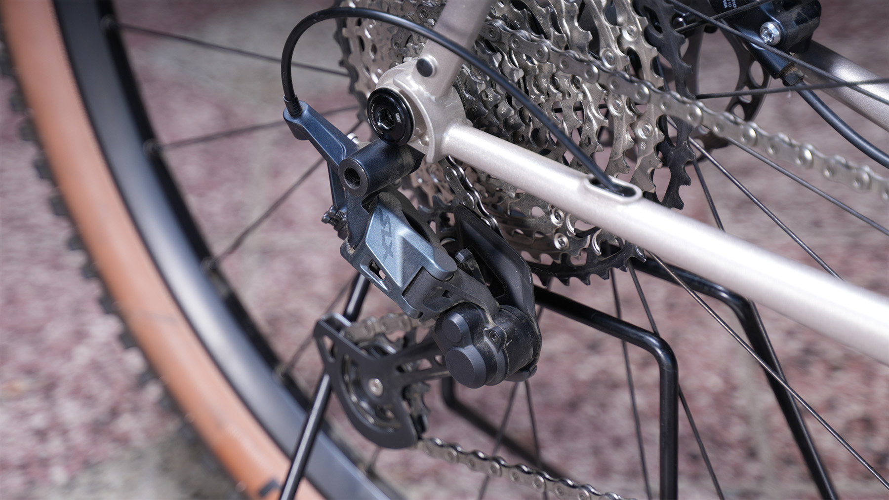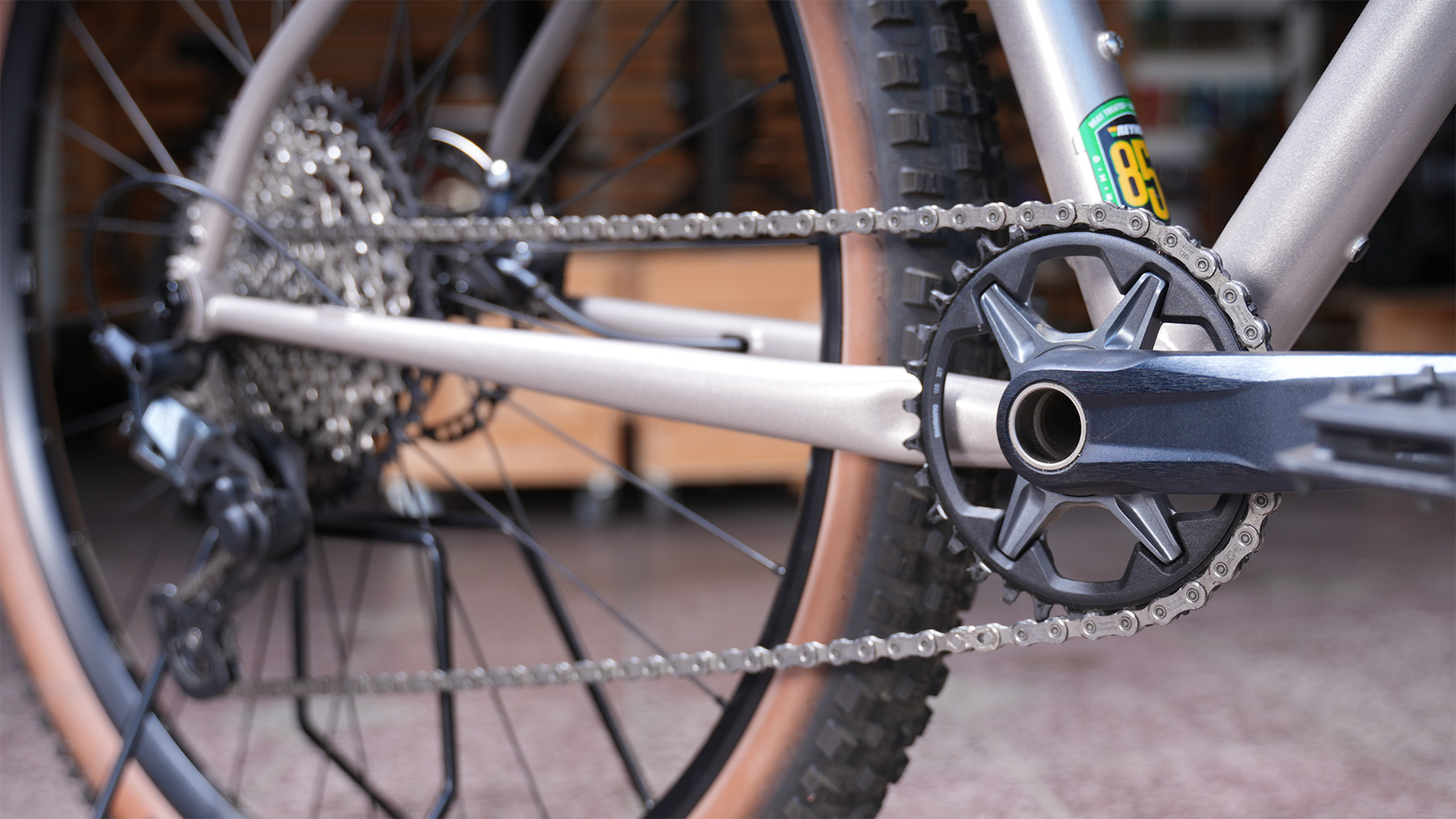- Frame: double end-reinforced tubes made of 4130 CroMoly steel, TIG-welded, EBB eccentric bottom bracket housing for tensioning the belt, stainless steel