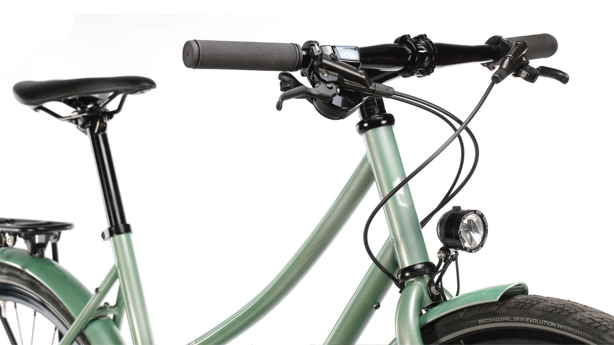 With the low-maintenance Shimano Alfine 11-speed hub gears in combination with the oil-free Gates CentreTrack belt drive, you can enjoy your daily tours without any worries. Thanks to the bright SON lighting, commuting is no problem even in the dark.