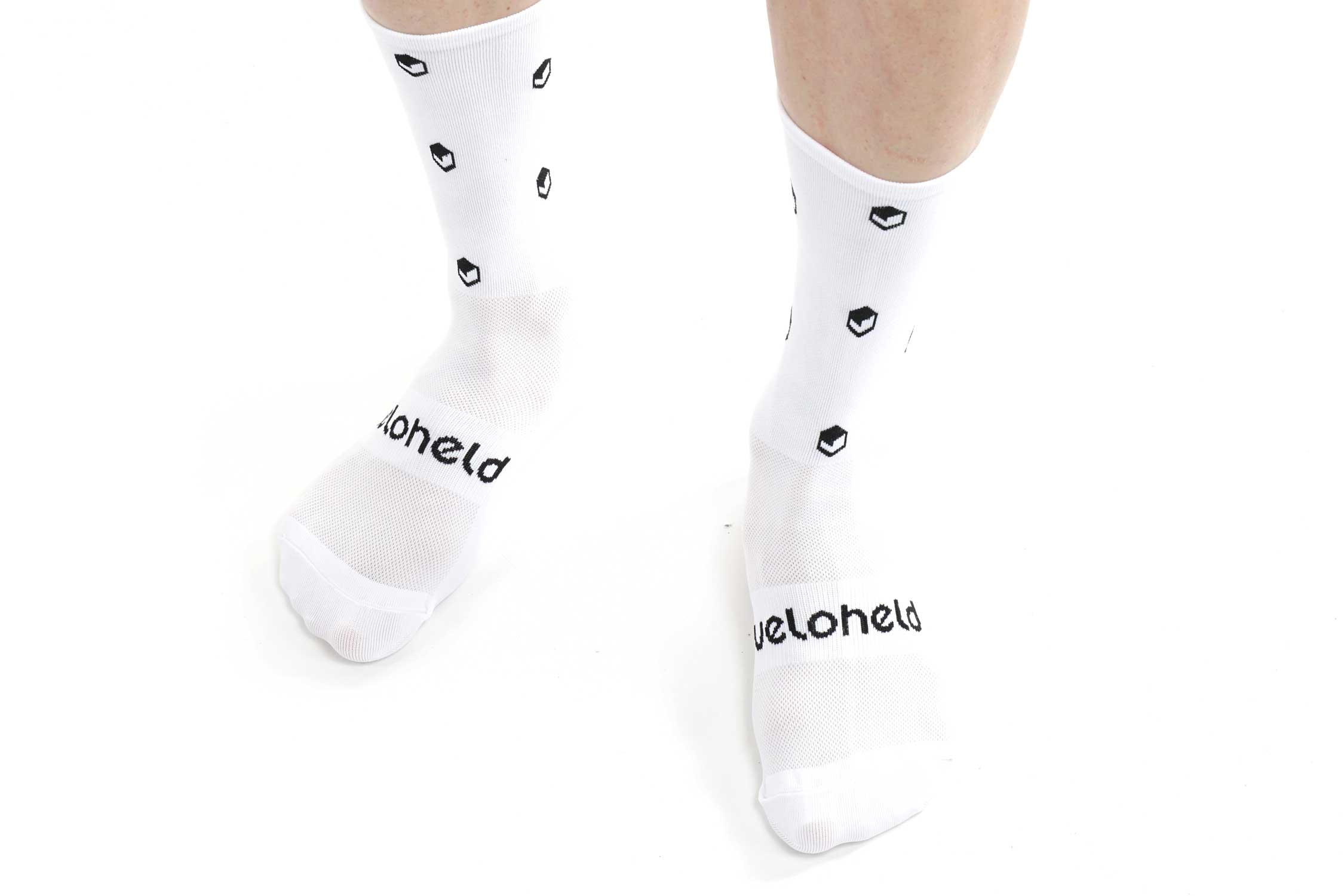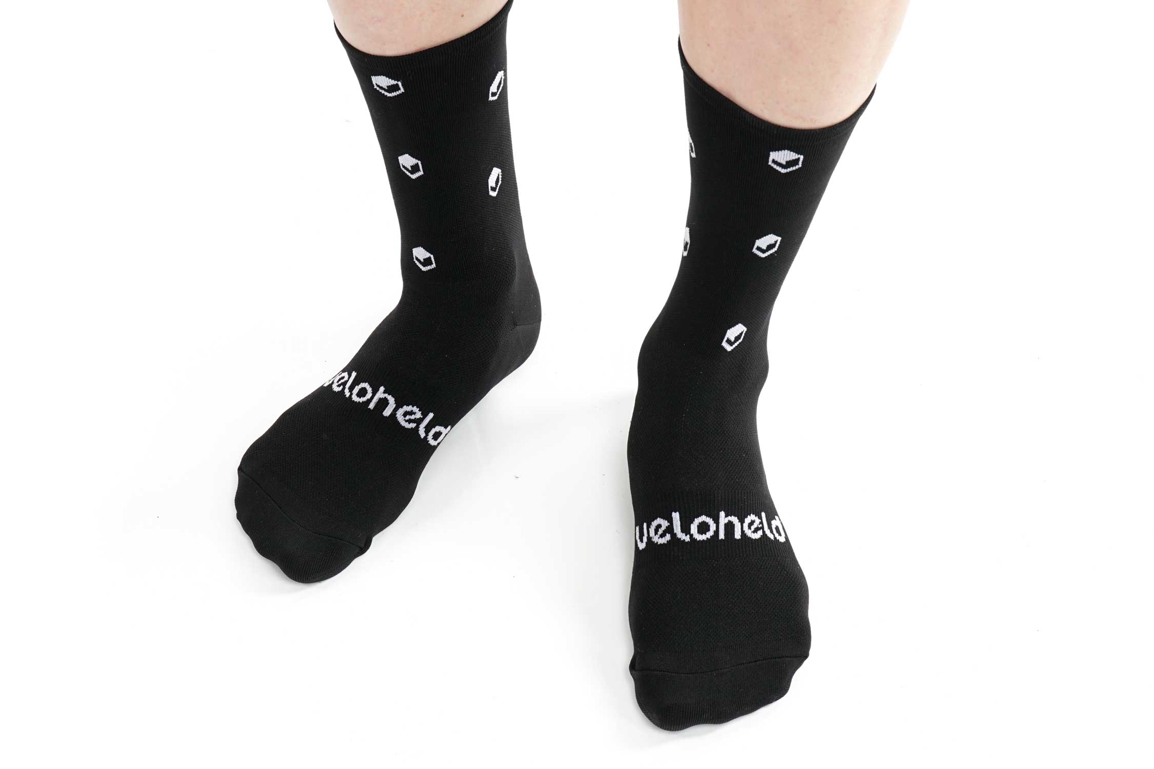 With a firm ergonomic fit, the veloheld socks not only look good, but are also sure to make you faster! The approx. 16 cm long summer socks (shaft length) with reinforced toe and heel area are also super breathable and available in black or white.