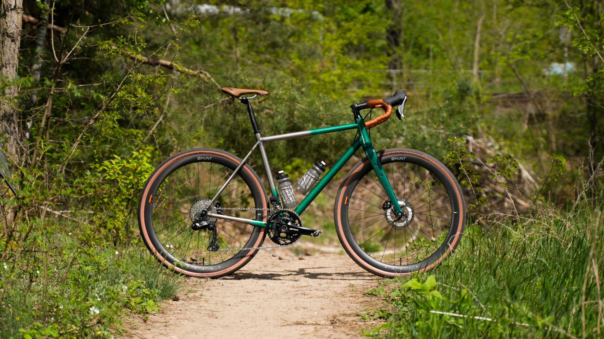 In addition, there is a Hunt wheelset that strikes a good balance between robustness and smooth running. The add-on parts are from the Ritchey WCS series – proven, simple, functional. And because it shouldn’t just be technically correct, there are also a few visual accents: a brown handlebar tape and a Selle Italia saddle (unfortunately there is no 100% matching handlebar tape), which contrast with the green tone of the frame.