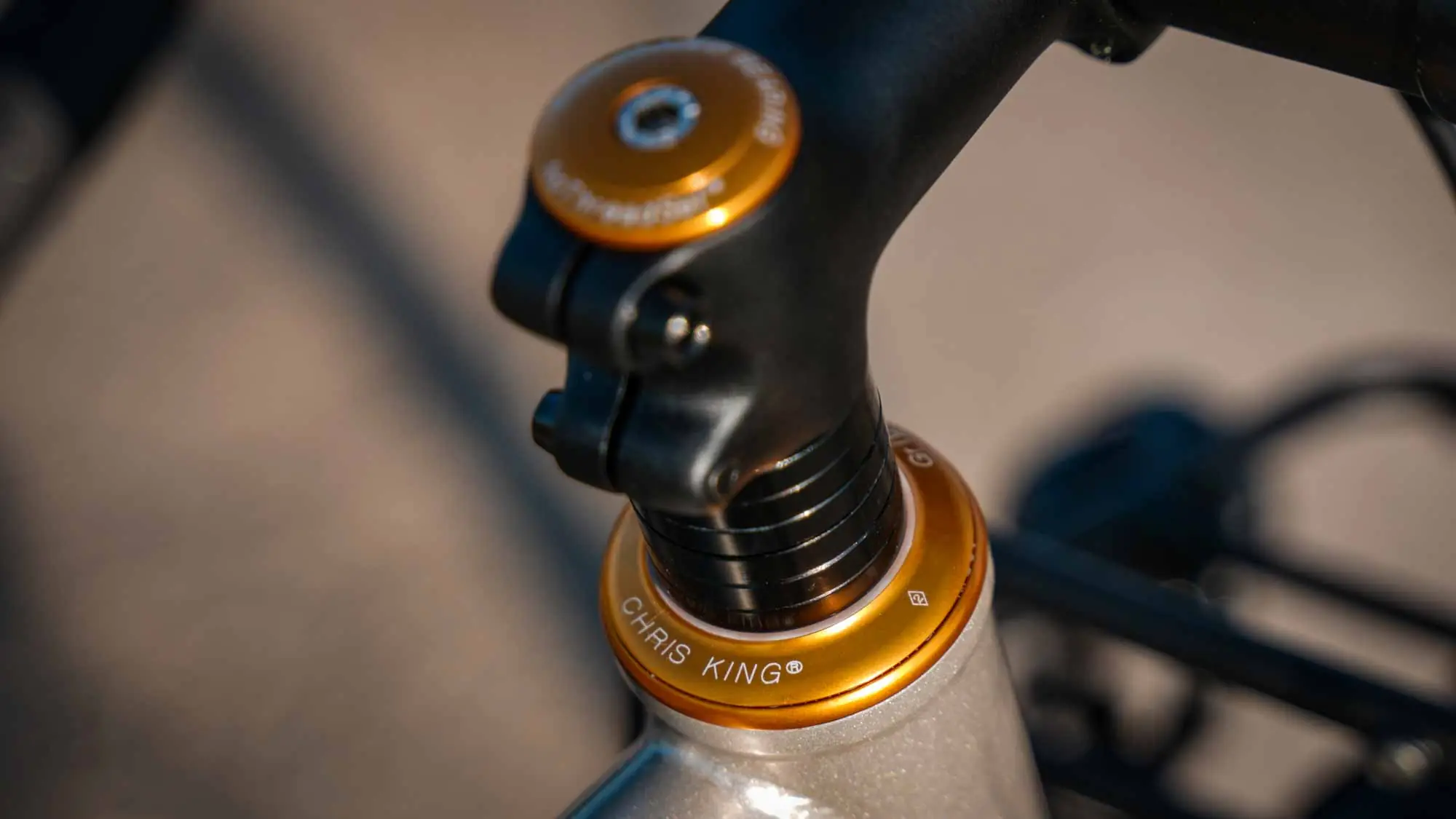 The gold Chris King components fit perfectly into the overall picture. The headset, including top cap and seat clamp, are not just decorative, but make a clear statement, because Chris King parts stand for durability, meaning you can ride them reliably for years.