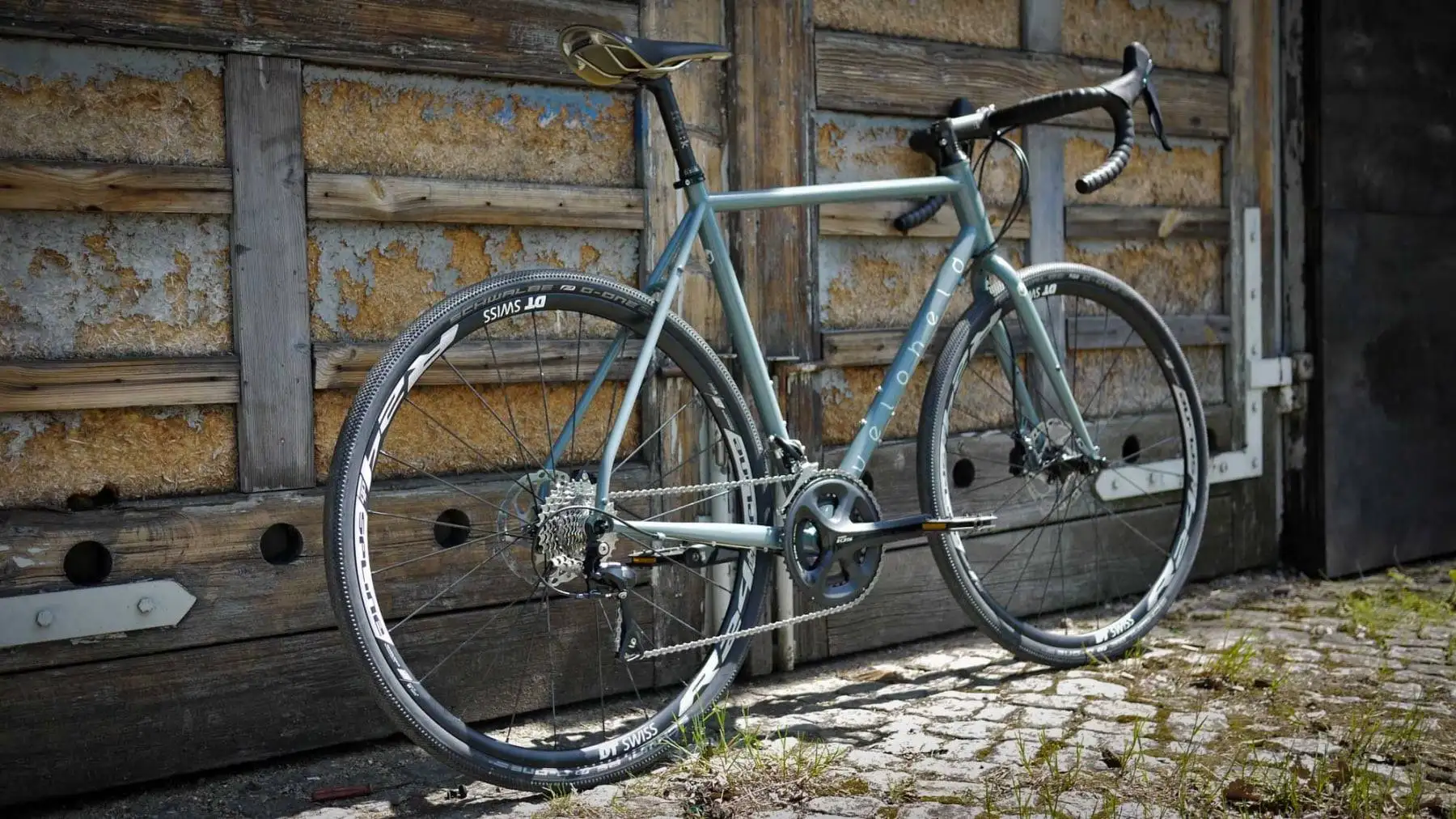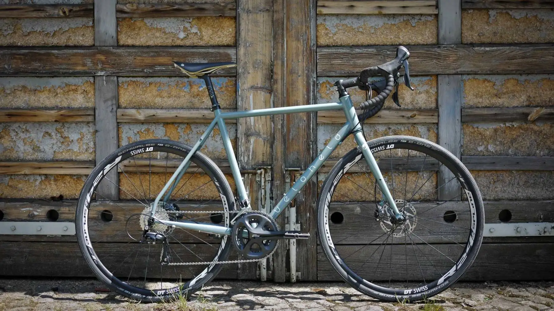 There are sure to be plenty of sunny rides with this custom veloheld.iconX cyclocross / gravel racer. The frame and fork in size L were powder-coated in blue-grey and finished with white decals. The bike is equipped with a Shimano 105 groupset with hydraulic disc brakes, DT Swiss R24 spline DB wheels, Fizik components and a stylish Brooks Cambium saddle…