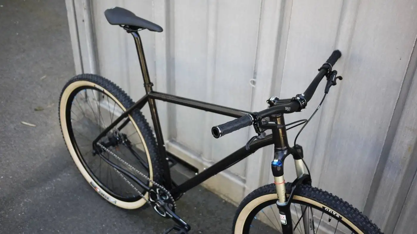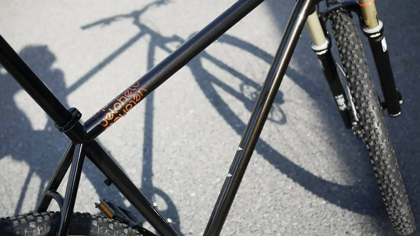 One of the last veloheld.iron 29er frames of this year’s collection in frame height XL powder-coated in a special bronze-metallic color and built as a single speeder. The decors are kept discreetly dark and reflect when exposed to direct light. We wish Frank all the best with his new bike.