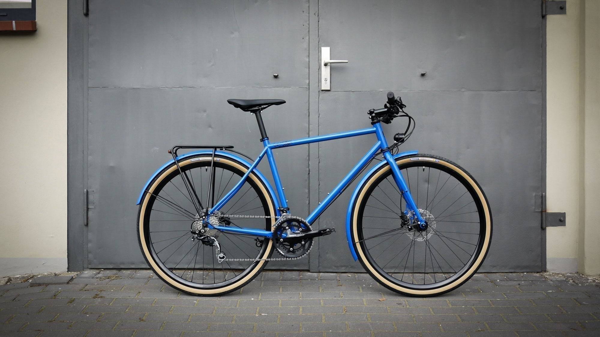 We have customized this veloheld.lane 2×10 city bike a little for our Belgian dealer Fietsen Steil. First, there was a desired color – RAL 5005 signal blue – for the frame, fork and mudguards. The spartan standard equipment was supplemented by SON lighting with Shutter Precision hub dynamo and a Tubus Fly luggage rack. Together with the Panaracer Pasela tires with the Skinwall sidewalls, the result is a damn chic veloheld bike. Right? What do you think?